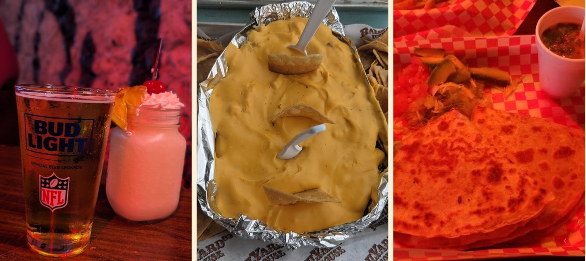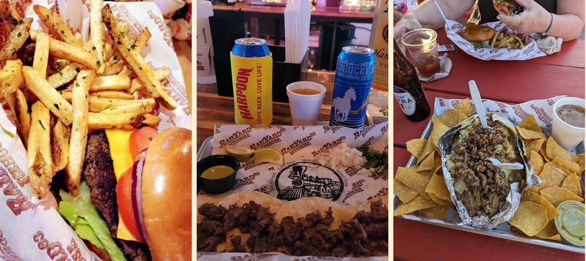 Popular dishes include their burgers, street tacos, and 1/4 pound hotdogs. Don't forget to try the Railyard Salad and Fried Chicken Sandwich. Each dish is mouthwatering.
